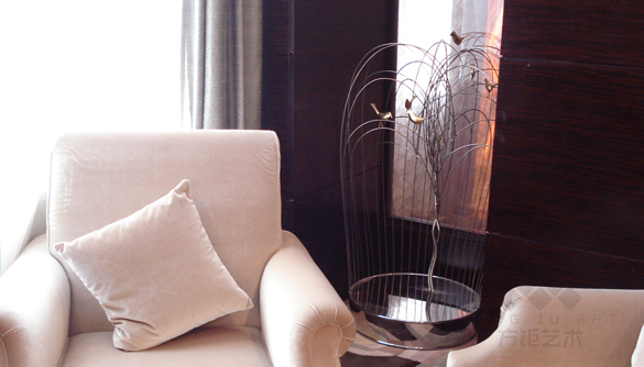 項目內(nèi)容:大堂裝置、大堂壁飾、前臺擺件、走廊雕塑、客房擺件